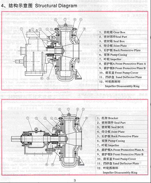 1.葉輪、護(hù)套、襯板等過(guò)流部件采用強(qiáng)抗磨合金鑄鐵,硬度不小于50HRC,在具有很強(qiáng)的耐沖擊力的同時(shí),更具有高的抗磨蝕性能。